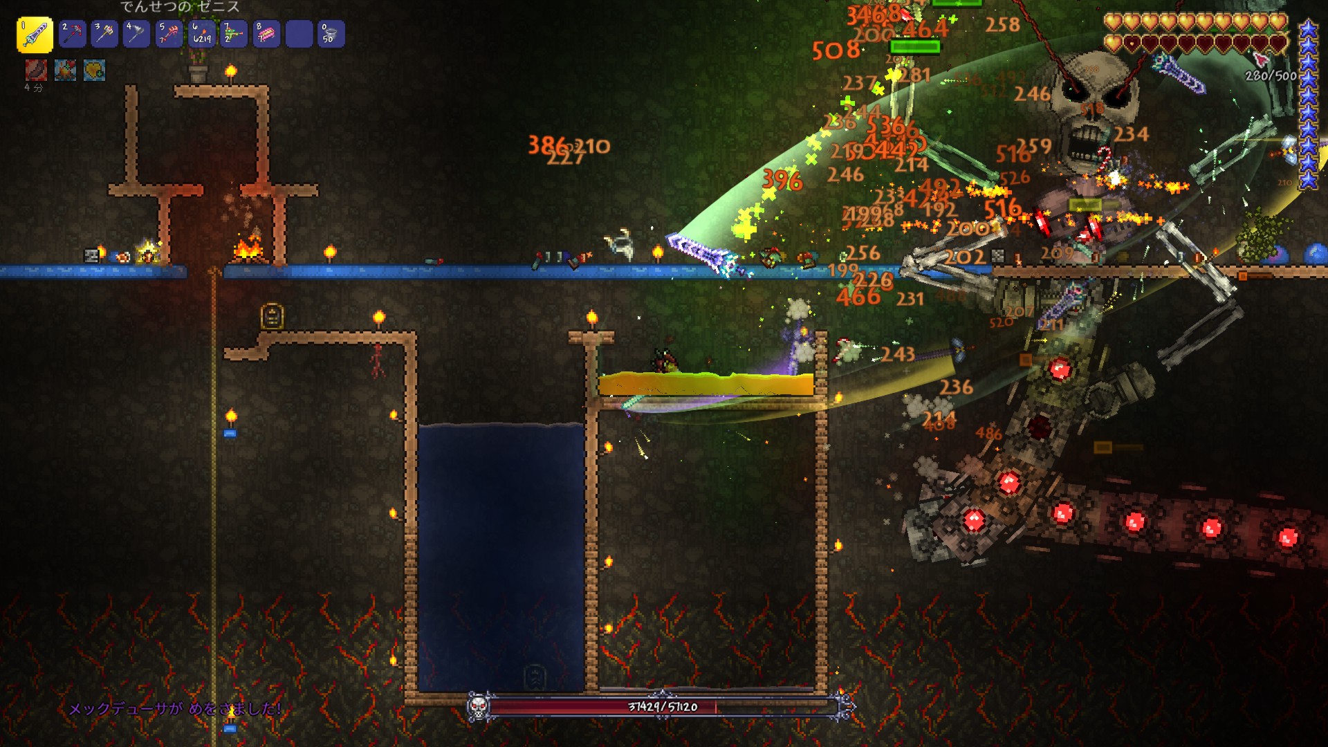 シマー池を利用するため離れ島に行ってたとき、ゼニスぶんぶん振り回してるとヘルバットの溶岩に人形が落ちて何度も遭遇はしていたものの、倒すのはノーマルモードのボスを一通り倒してからと決めてたから仕方なく一方的にやられてた。